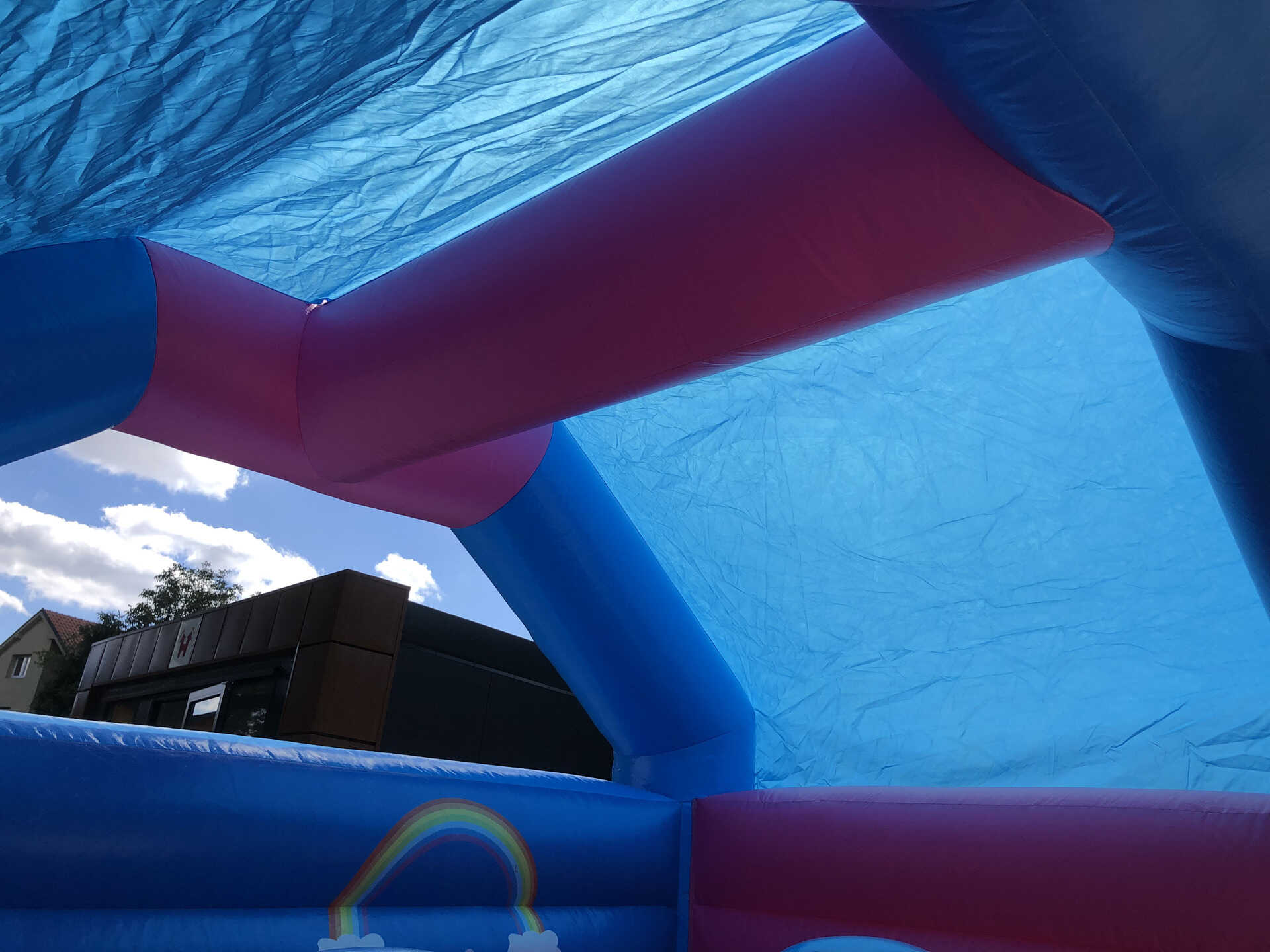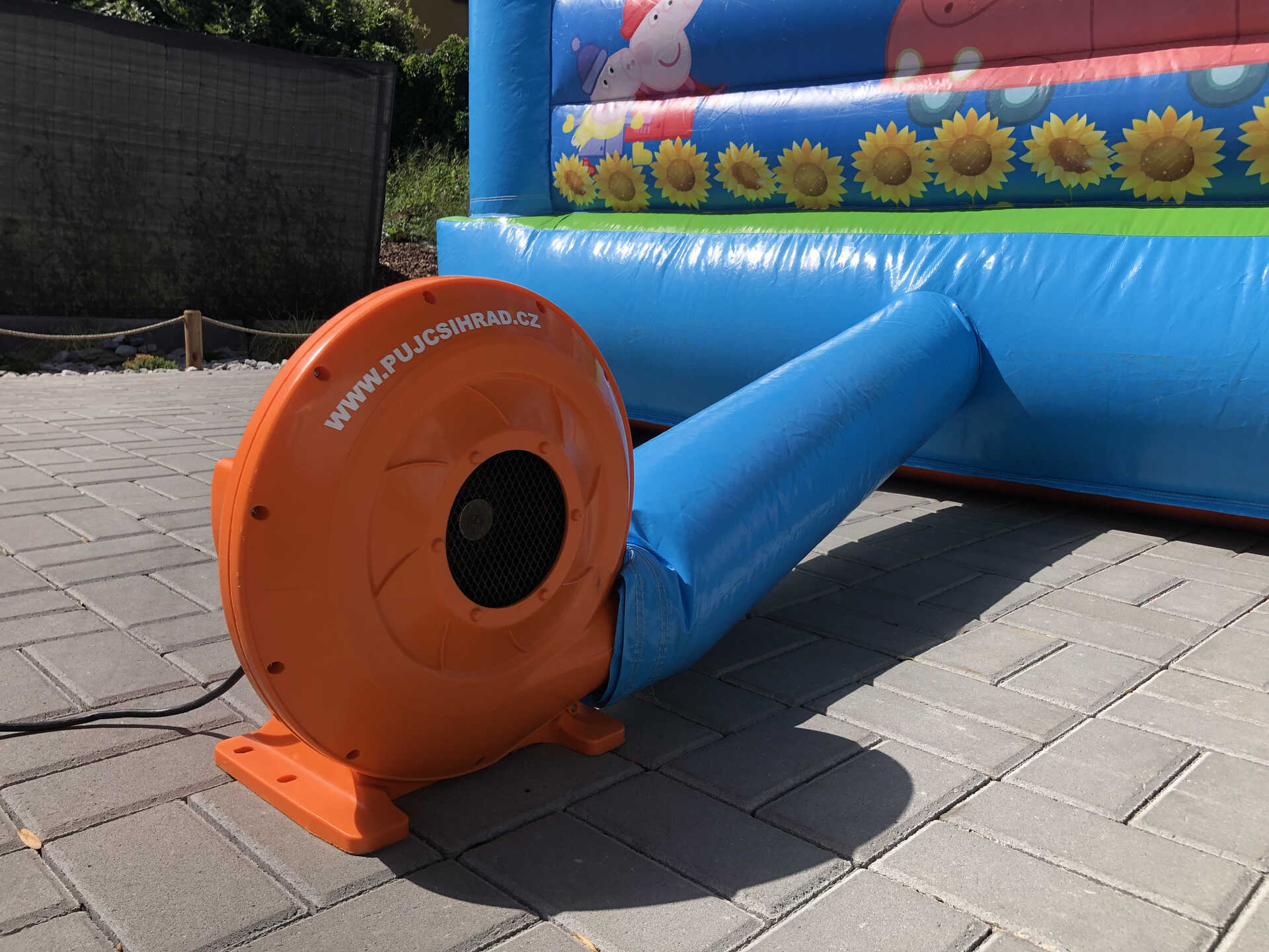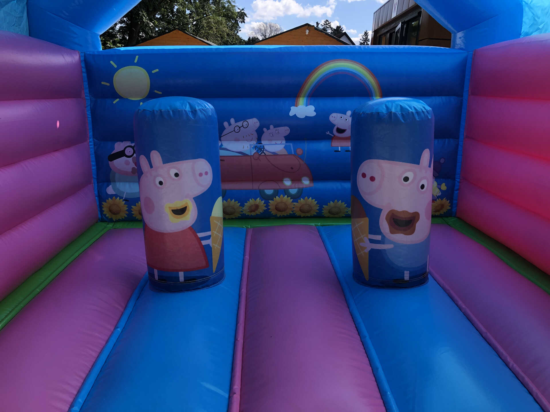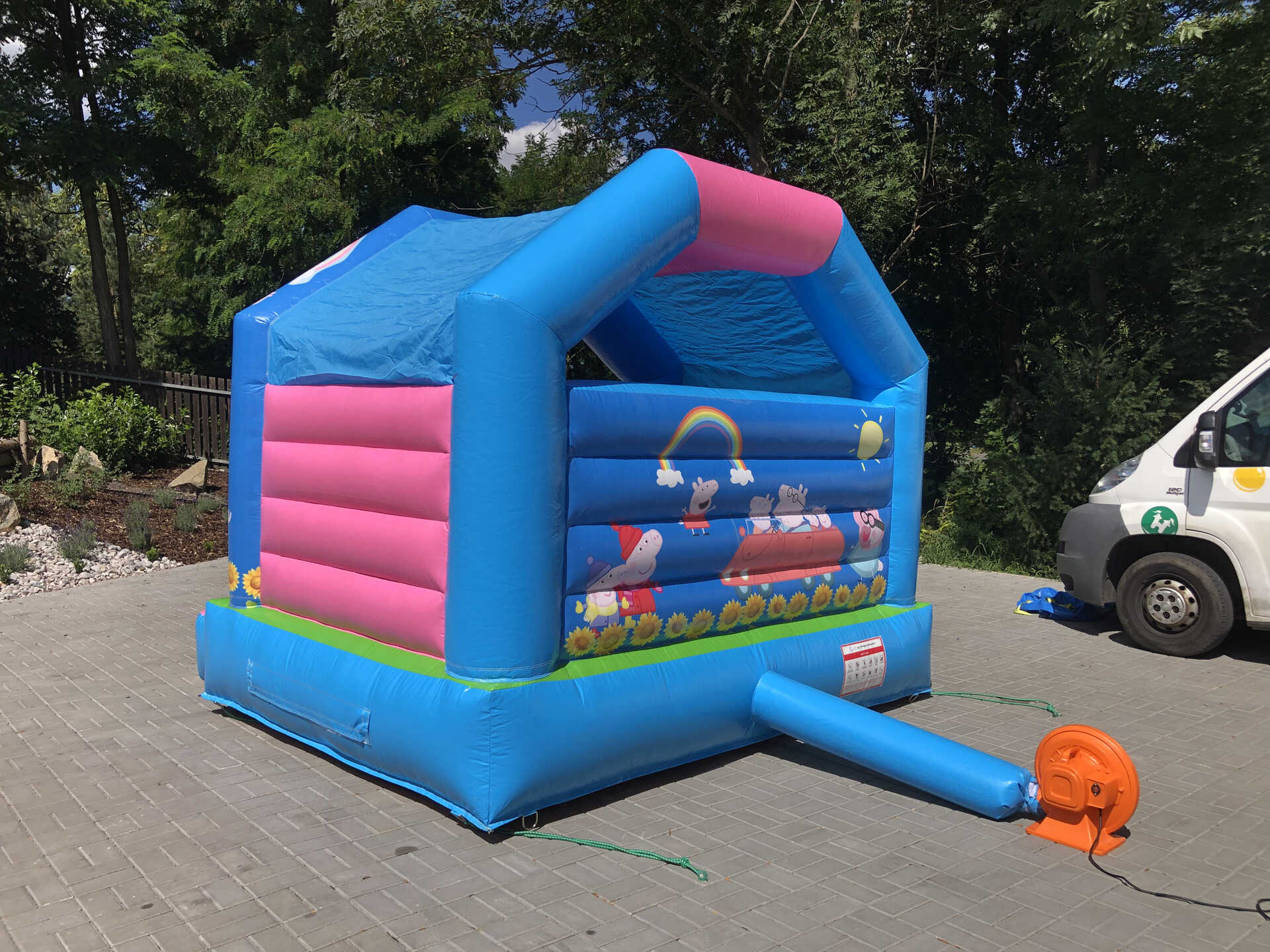 Originální skákací hrad s motivem prasátka, vyrobený ze silného materiálu. Výhodou je veliká skákací plocha s jedním vchodem, takže máte přehled a hrad je ideální i pro malé děti. Hrad má stříšku proti slunci.