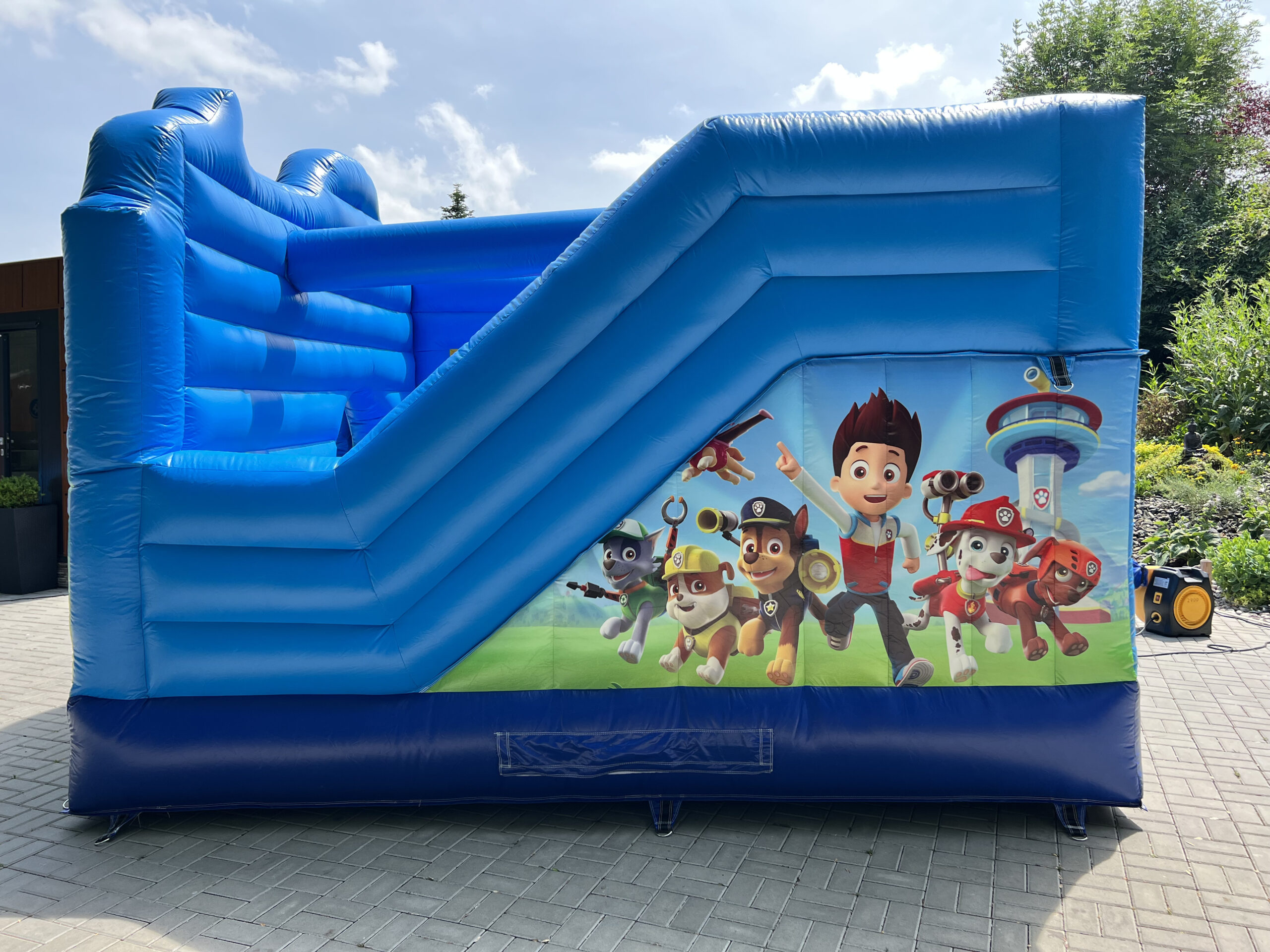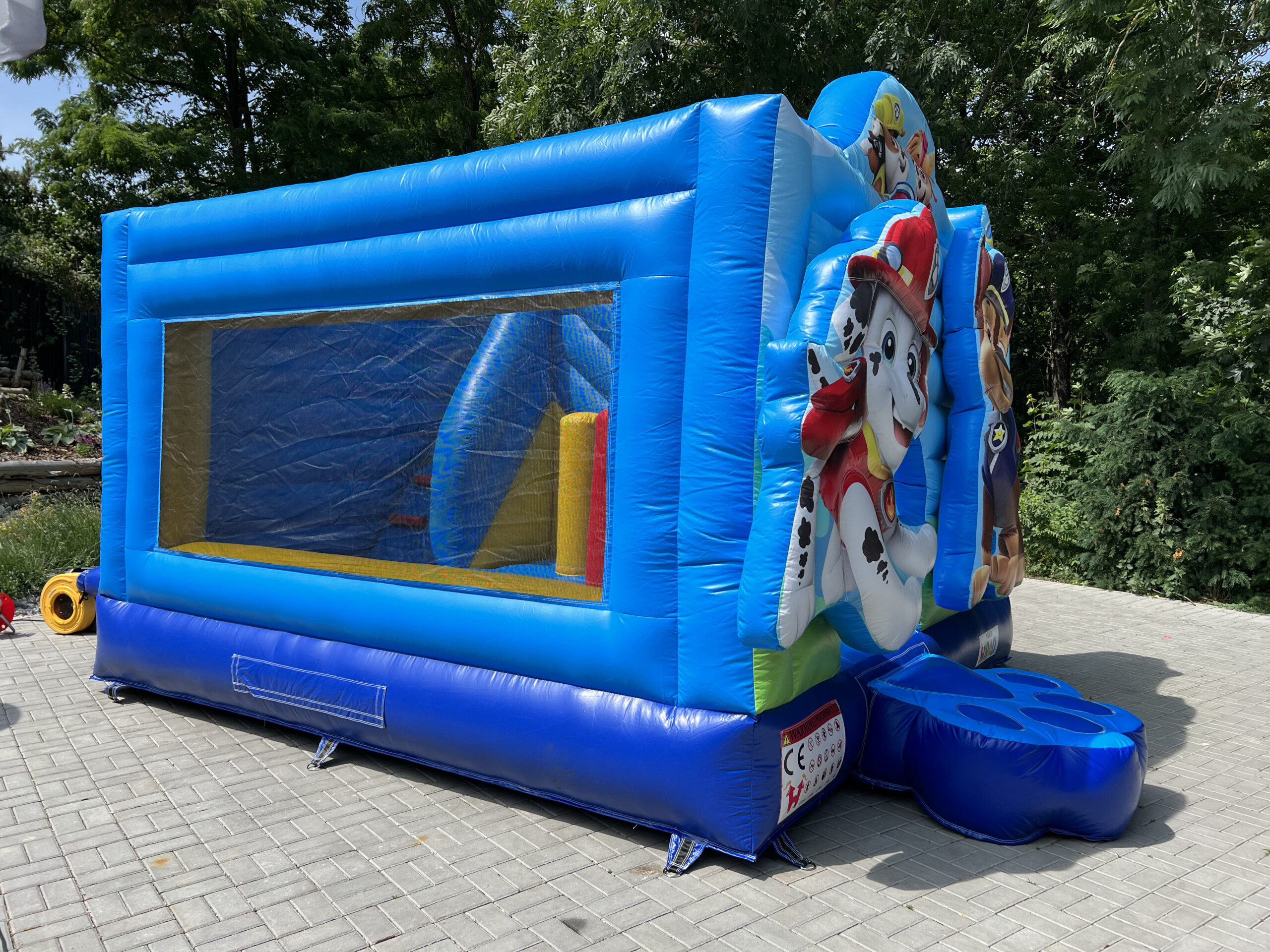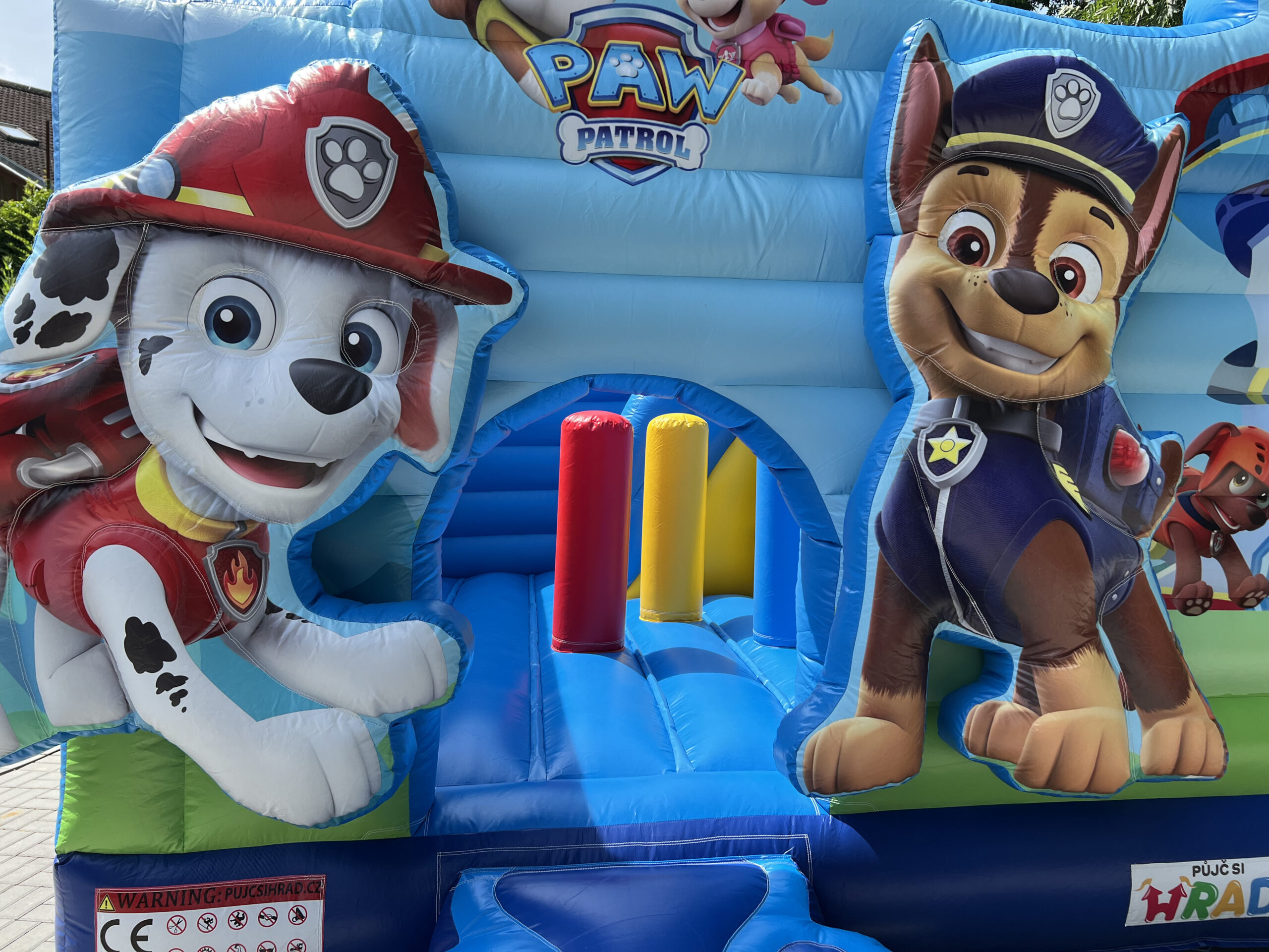 Skákací hrad s motivem PAW PATROL, vyrobený ze silného materiálu, proto je vhodný pro děti do 15 let. Součástí je velká skákací plocha s překážkami a velikou skluzavkou.
